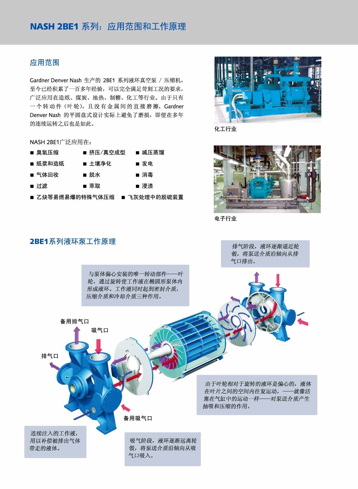 NASH 2BE1系列液環真空泵/緊縮機吸宇量可達22500m<sup>3/h,低吸氣壓力至33 mbar 。