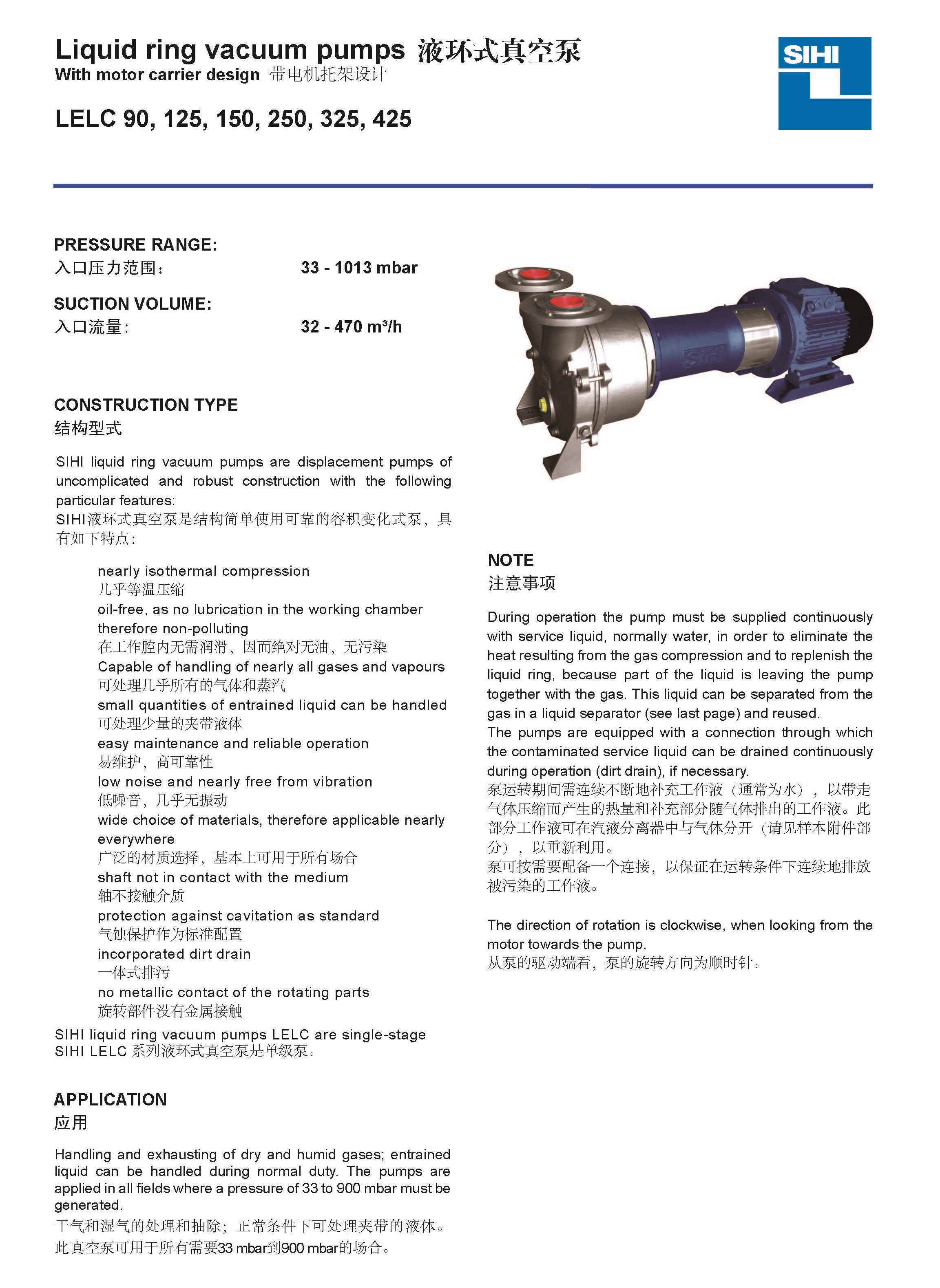 LELC系列液環真空泵包羅以下型號:LELC90,LELC125,LELC150,LELC250,LELC325,LELC425等。