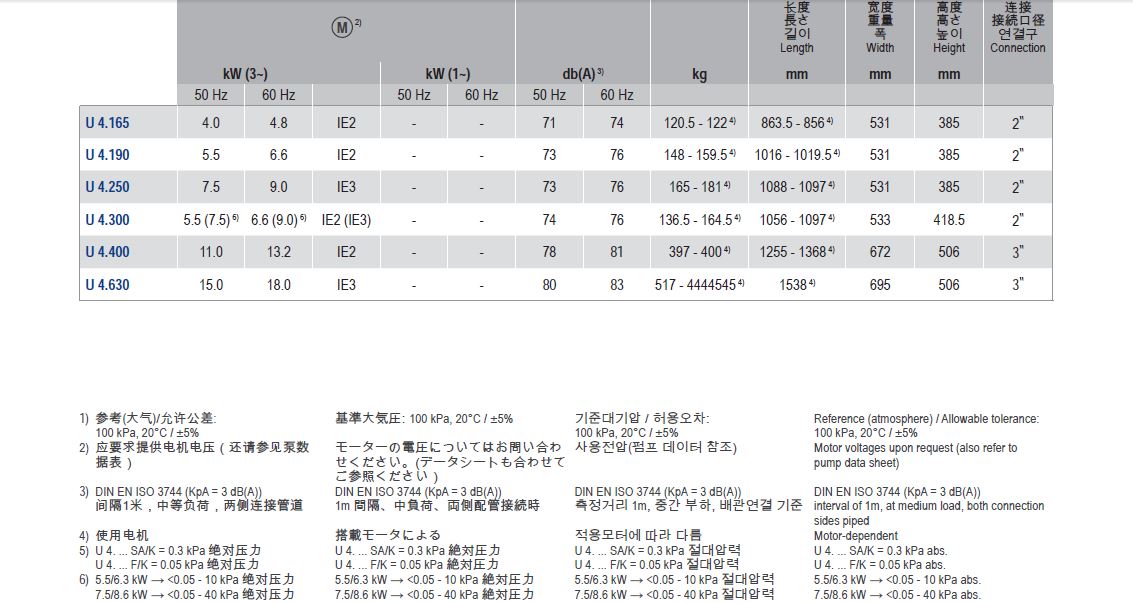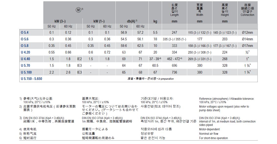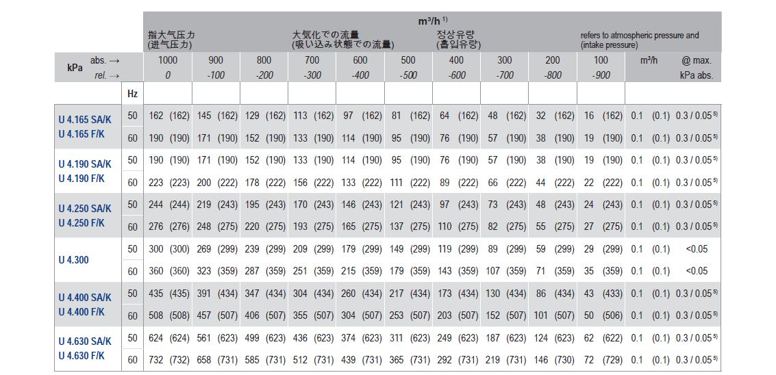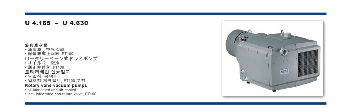油式旋片真空泵包含以下型號:U4.20、U4.40、U5.70、U5.100、U4.165、U4.190、U4.250、U4.400、U4.630